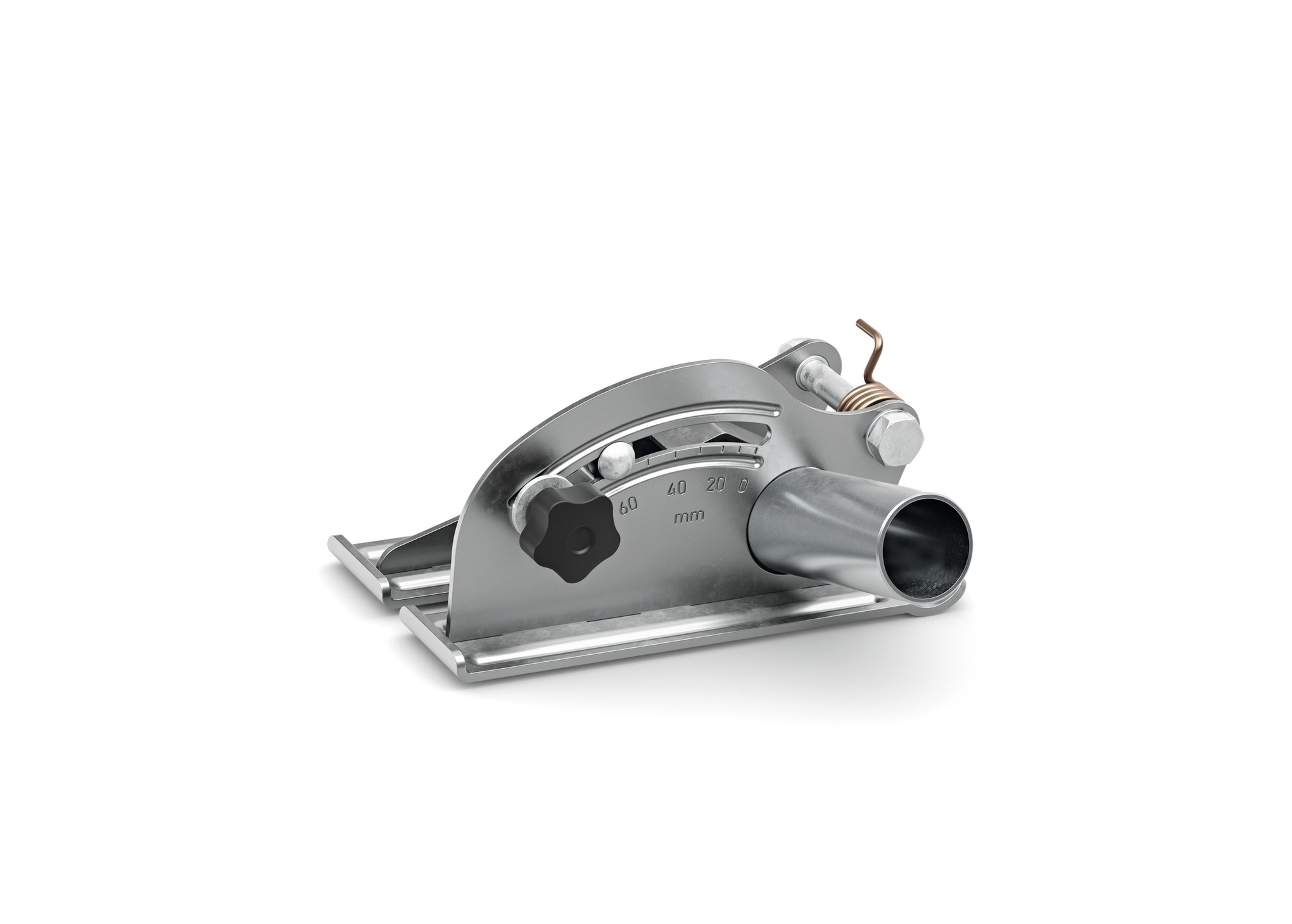 Der Tiefenanschlag mit Absaugstutzen ermöglicht ein staubarmes Trockentrennen von mineralischen Bauelementen innen und außen. Exakte und stufenlose Einstellung der Schnitttiefe möglich, für TSA 230.
