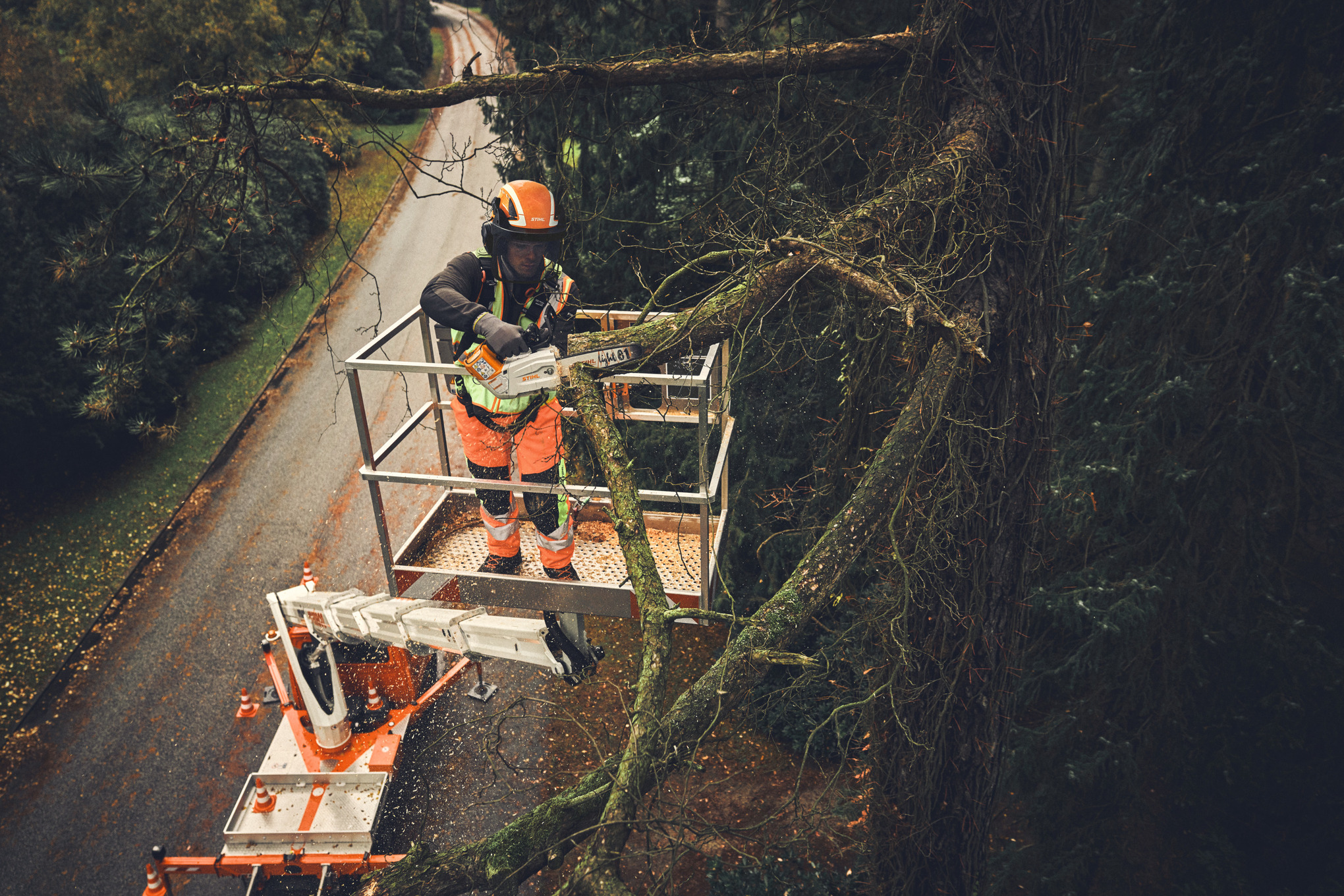 Die Akku-Motorsäge STIHL MSA 190 T ist eine leistungsstarke Baumpflegesäge für professionelle Einsätze. Sie eignet sich sowohl für die Kronenpflege als auch für die Entfernung von Totholz oder Stamm- und Stockaustrieben. Baumpflegeprofis können mit der STIHL MSA 190 T ihre Arbeiten ergonomisch und effektiv erledigen – auch in lärmsensiblen Bereichen. Als Akku für die STIHL MSA 190 T wird der STIHL AP 200 S aus dem STIHL AP-System empfohlen.