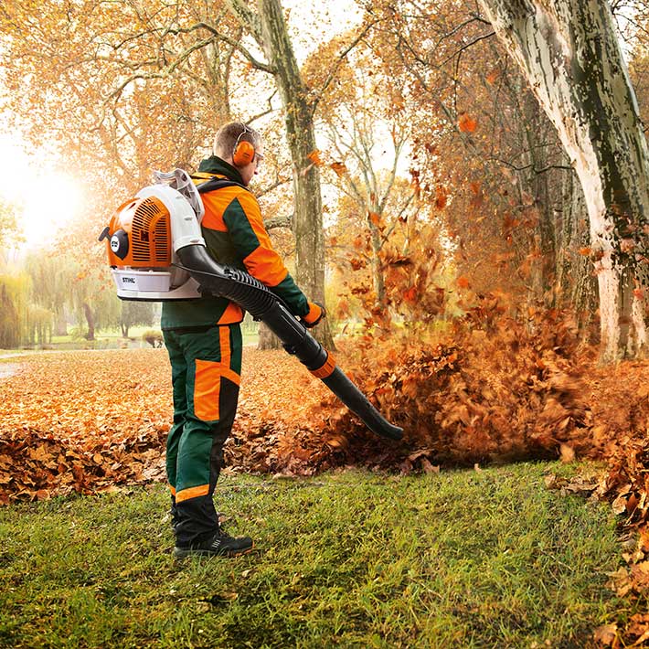 Das extrem leistungsstarke Benzin-Blasgerät STIHL BR 700 ermöglicht Profis in der Garten- und Landschaftspflege sowie in Kommunen, Laub, Rasen- und Heckenschnitt oder Unrat effizient auf großen Flächen zu entfernen. Der STIHL 4-MIX®-Motor bietet eine starke Durchzugskraft. Am schnell- und längenverstellbaren Blasrohr des rückentragbaren Blasgeräts STIHL BR 700 ist der Einhand-Multifunktionsgriff positioniert, mit dem Sie alle Bedienelemente einfach und zuverlässig bedienen können. Das Blasrohr lässt sich in der Länge stufenlos an Ihre Körpergröße oder Reinigungsaufgabe anpassen. Zusätzlich können Sie auch die Griffposition werkzeuglos verstellen. Am feststellbaren Gashebel mit Stopptaster können Sie die Leistung des Motors in jeder gewünschten Position arretieren. Per Knopfdruck können Sie den rückentragbaren Laubbläser stoppen und der rückentragbare Benzin-Laubbläser STIHL BR 700 ist danach sofort wieder startklar.