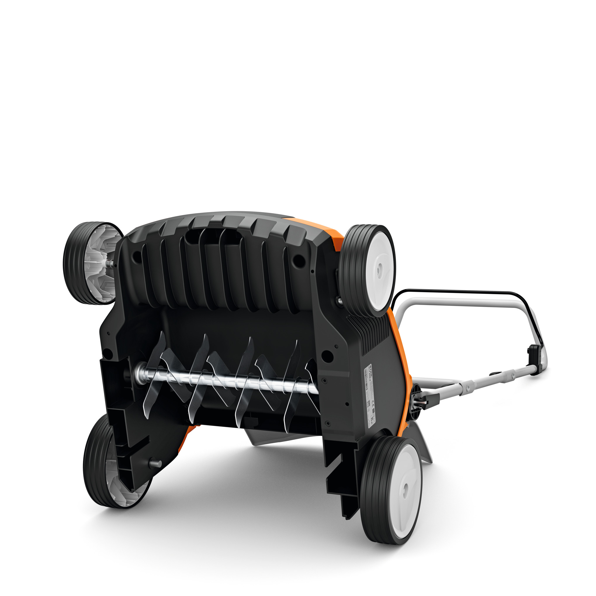 Nach dem Einsatz können Sie den Rasenlüfter mit dem integrierten Tragegriff bequem transportieren und durch den klappbaren Holm besonders platzsparend verstauen. Stellen Sie sicher, bevor Sie das Gerät anheben oder verstauen, dass der Motor abgestellt und der Sicherungsschlüssel abgezogen ist.