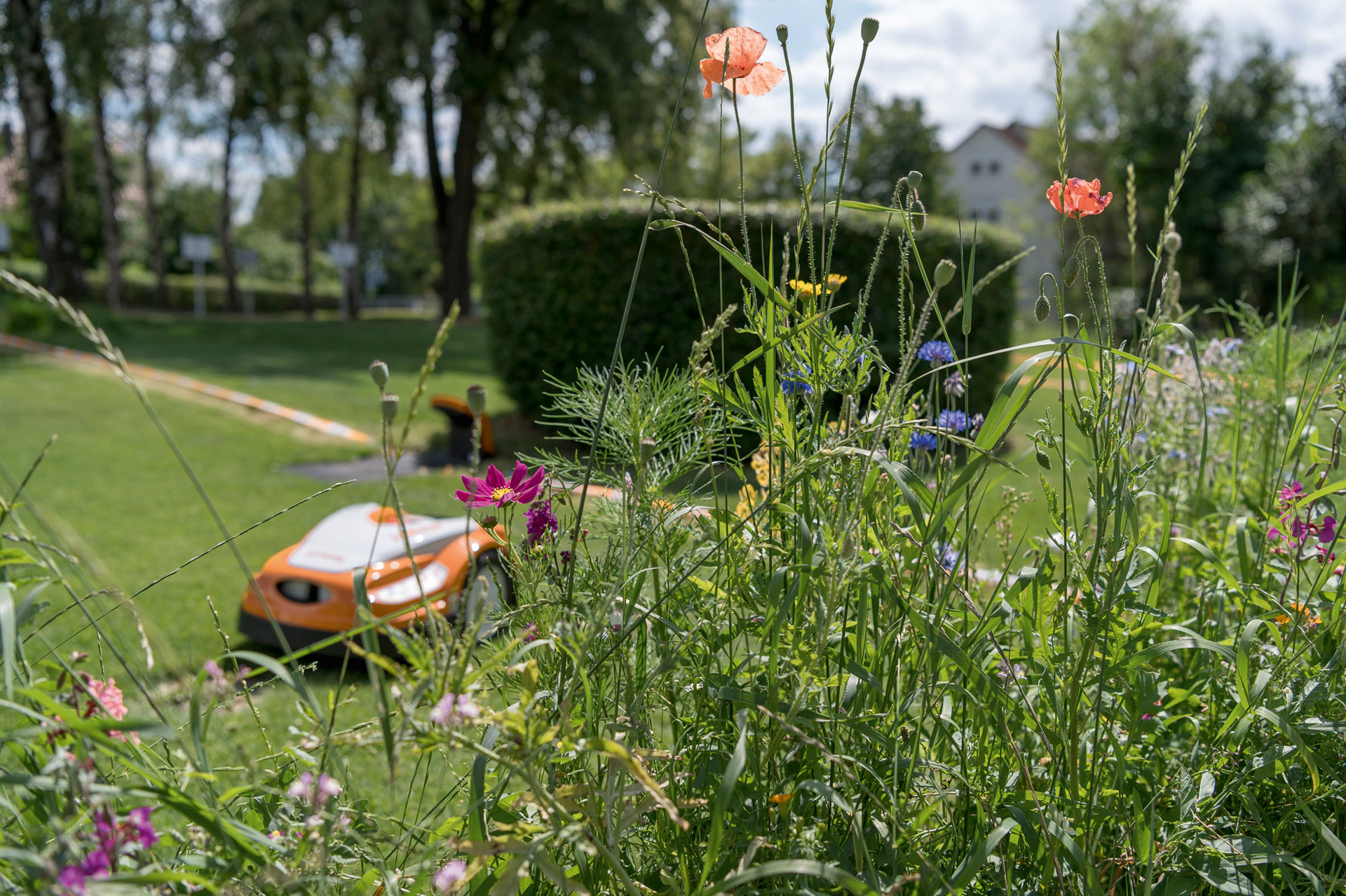 - Beim Mähen sollte das Gras um etwa ein Drittel gekürzt werden, bei Trockenheit weniger.