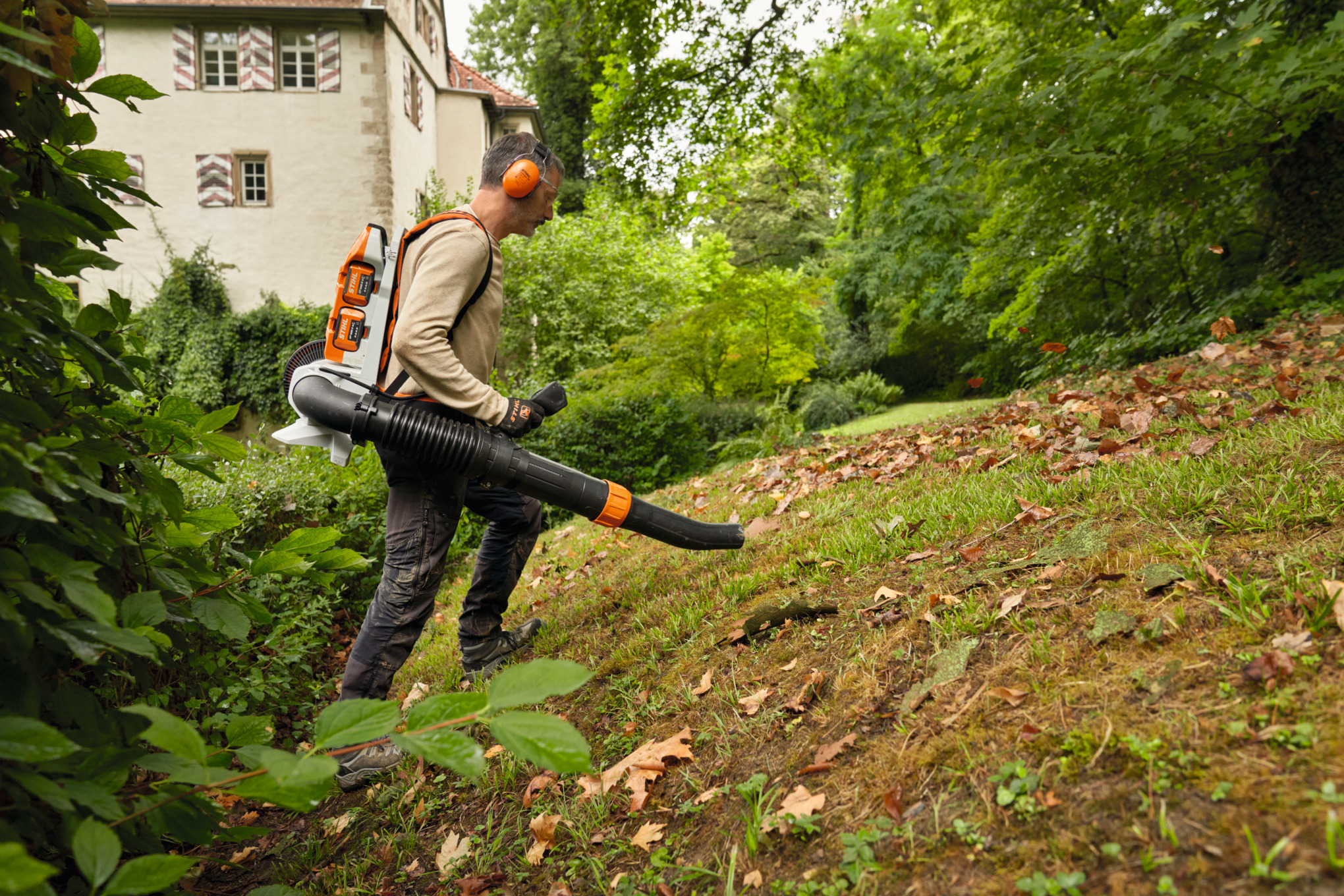 En association avec le souffleur dorsal sur batterie STIHL BGA 300, vous pouvez également utiliser l’adaptateur double raccord de chargement de 1,9 kg avec une seule batterie et ainsi réduire le poids de presque 2 kg selon la batterie utilisée.